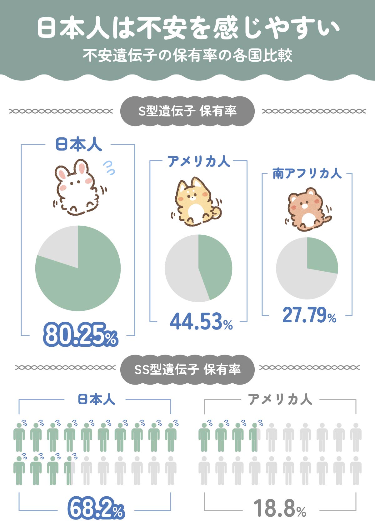 あまり知られていないんですが、「不安遺伝子」を保有している割合は、なんと日本人がダントツで世界一。