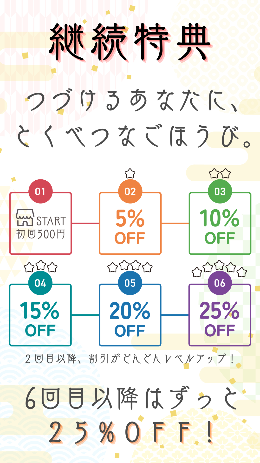 まずは1回だけといった、お試しサンプル感覚で始められます。