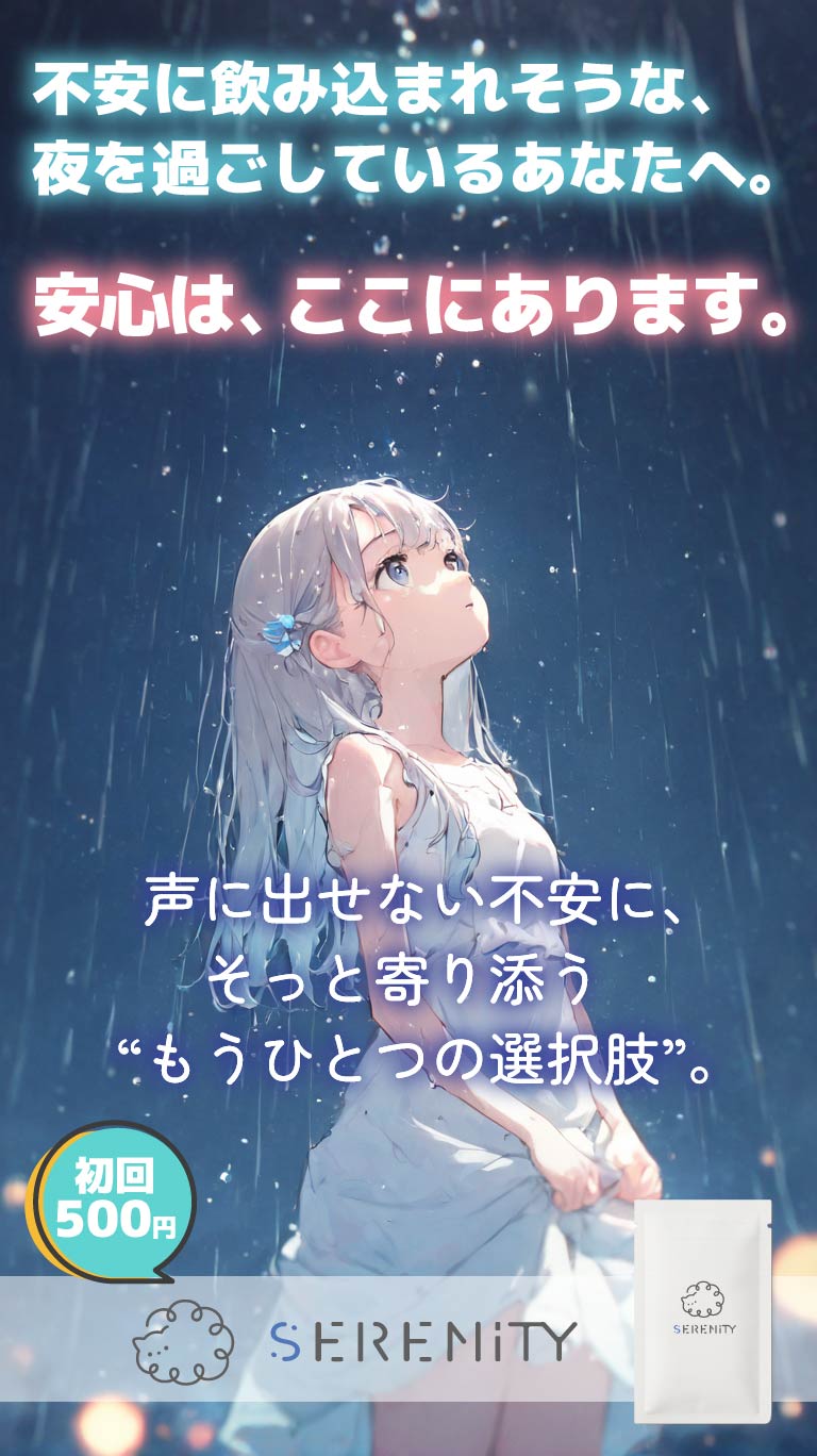 眠れない夜や、不安でいっぱいの日々に。SERENITYは、そんなあなたをそっとサポートします。 -
